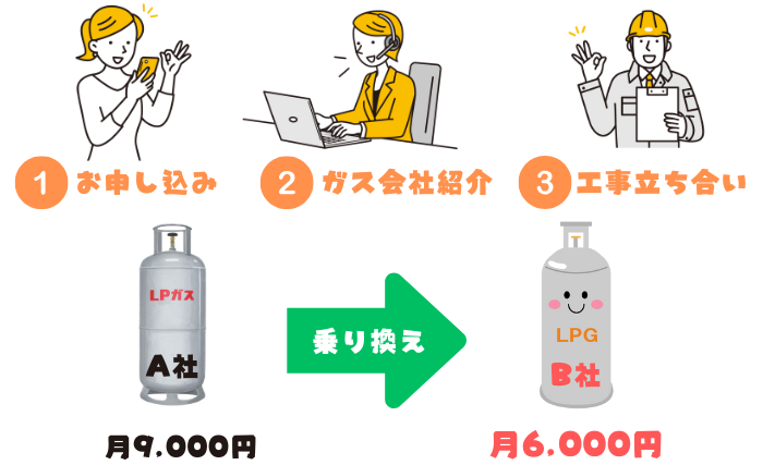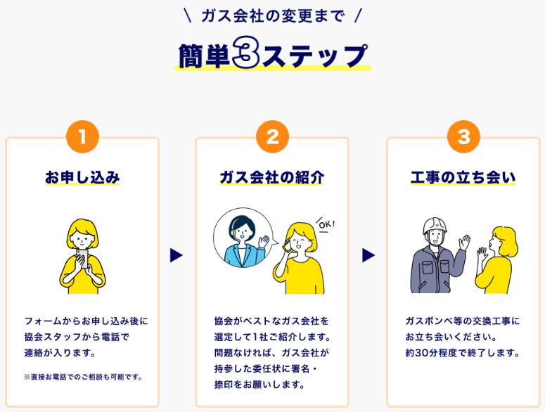 プロパンガス料金消費者協会でガス会社を変更する流れは以下になります。