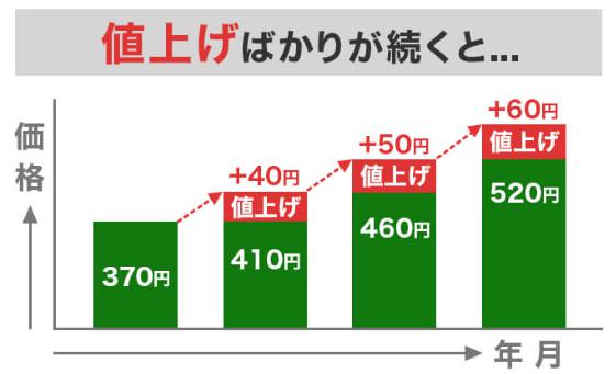 長く同じガス会社を利用していると値上げ→値上げというサイクルが続き、年々ガス代が高騰していきます。